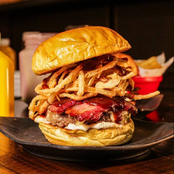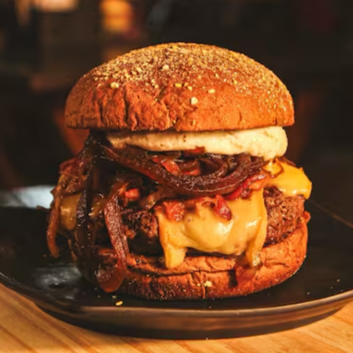 Pão Australiano, 2 Smash 180g, 2 Cheddars, Bacon, Cebola Caramelizada, Molho de Ervas e Molho da Casa. Elegância, Força e Sabor em Dobro!