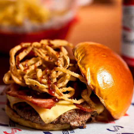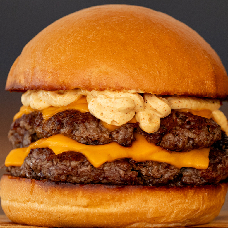 Pão Brioche, 2 Smash 180g, 2 Muçarelas, Bacon, Anéis de cebola, Barbecue e Molho da Casa. O Dobro de Tudo Que Você Ama em Um Só Burger!