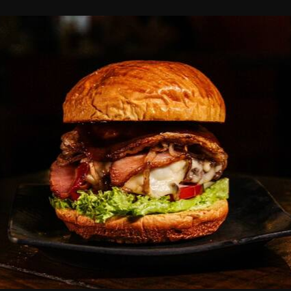 Explosão de sabores num incrível pão brioche, suculento hambúrguer 180g, muçarela, bacon, cebola na chapa, ovo na chapa, tomate e alface, molho de ervas e o queridinho molho barbecue.