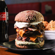 Delicioso pão australiano, suculento hambúrguer 180g, cheddar, bacon, cebola caramelizada e ainda molho de ervas e nosso incrível molho da casa.