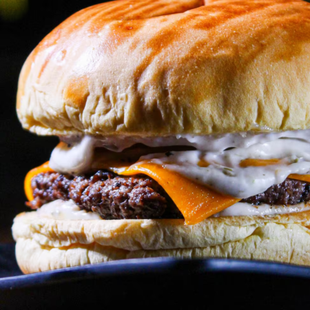 2 Hambúrgueres 100g com Queijo Derretido e Molho da Casa no Pão Brioche. Duplo, Suculento e Feito Pra Quem Não Divide Sabor!