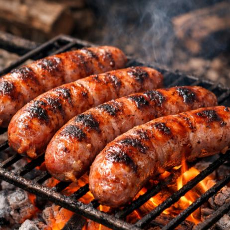 Deliciosa Linguiça assada na brasa, acompanha, arroz, feijão com caldo ou feijão tropeiro, 4 tipos de salada a sua escolha, purê ou mandioca.