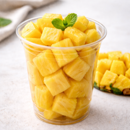 Delicioso abacaxi picado na hora acompanha sal e limão porção aproximadamente 180g