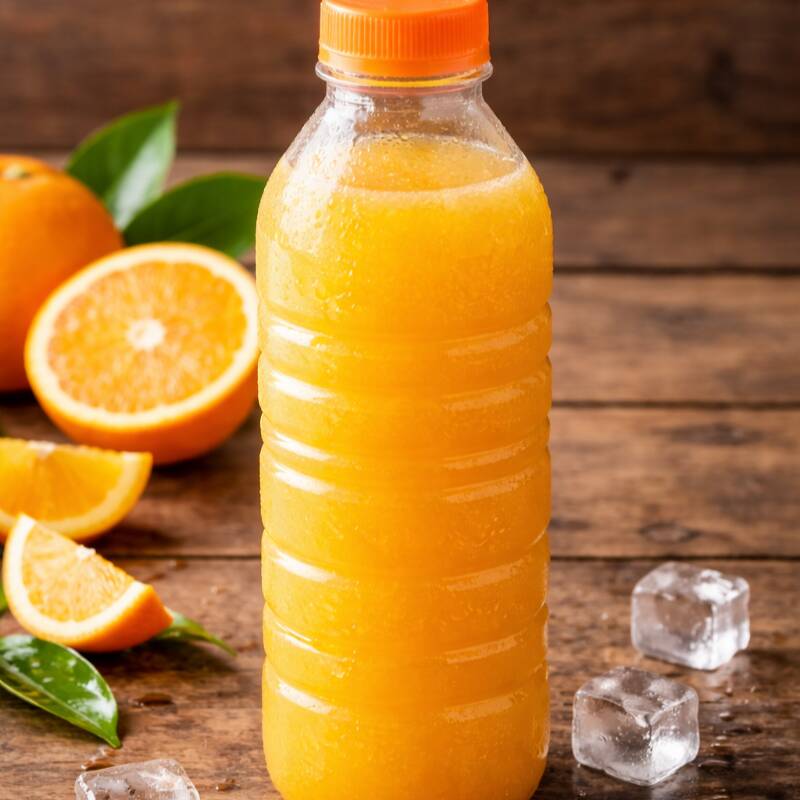 Suco de laranja acompanha gelo e açucar, garrafa de 500ml, sem adição de conservantes.