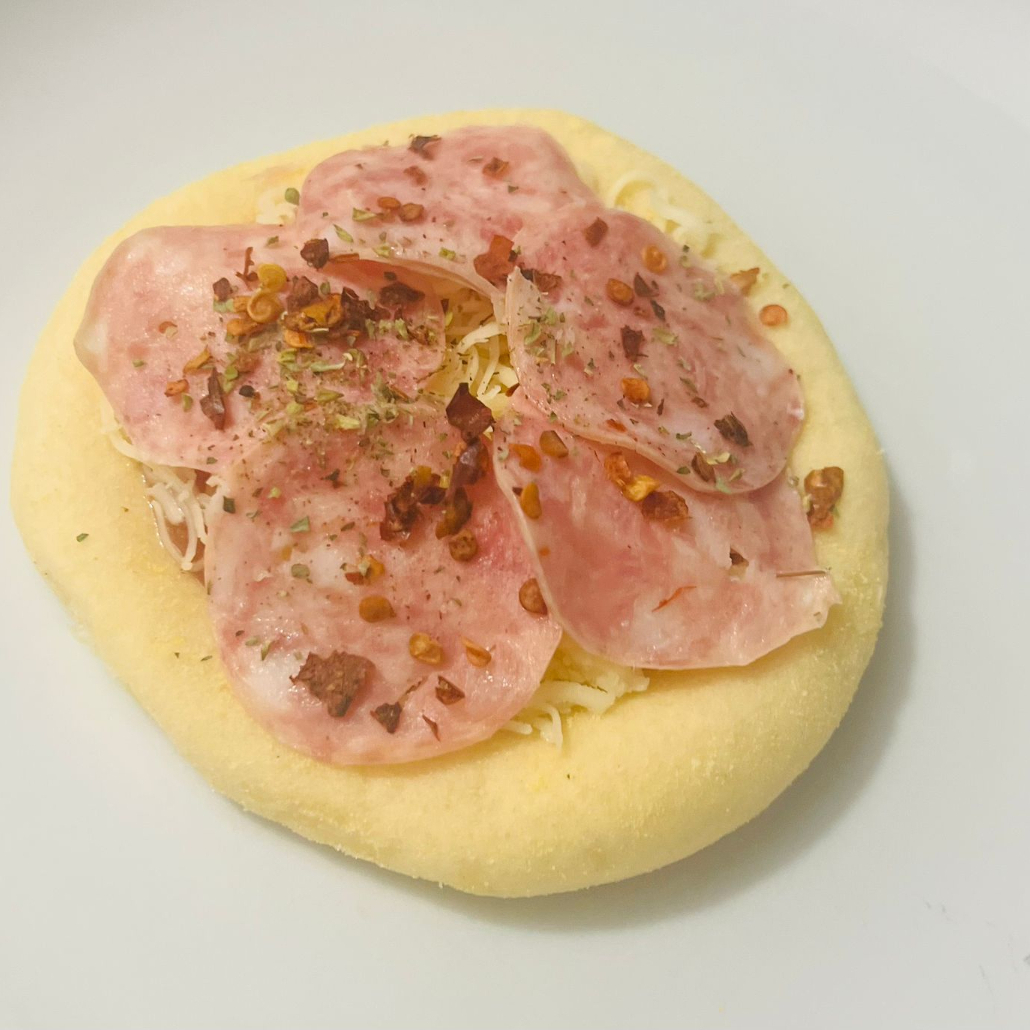 Mussarella, calabresa, pimenta calabresa e oregano