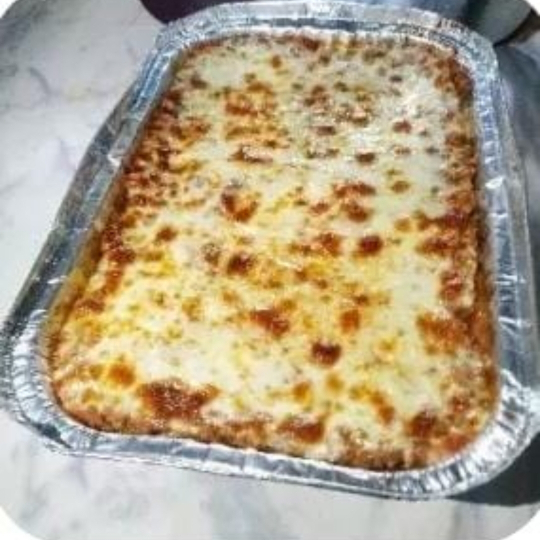 Massa fresca, molho vermelho, presunto, carne moída, mussarela e molho branco. Aproximadamente 600gr depois de pronto