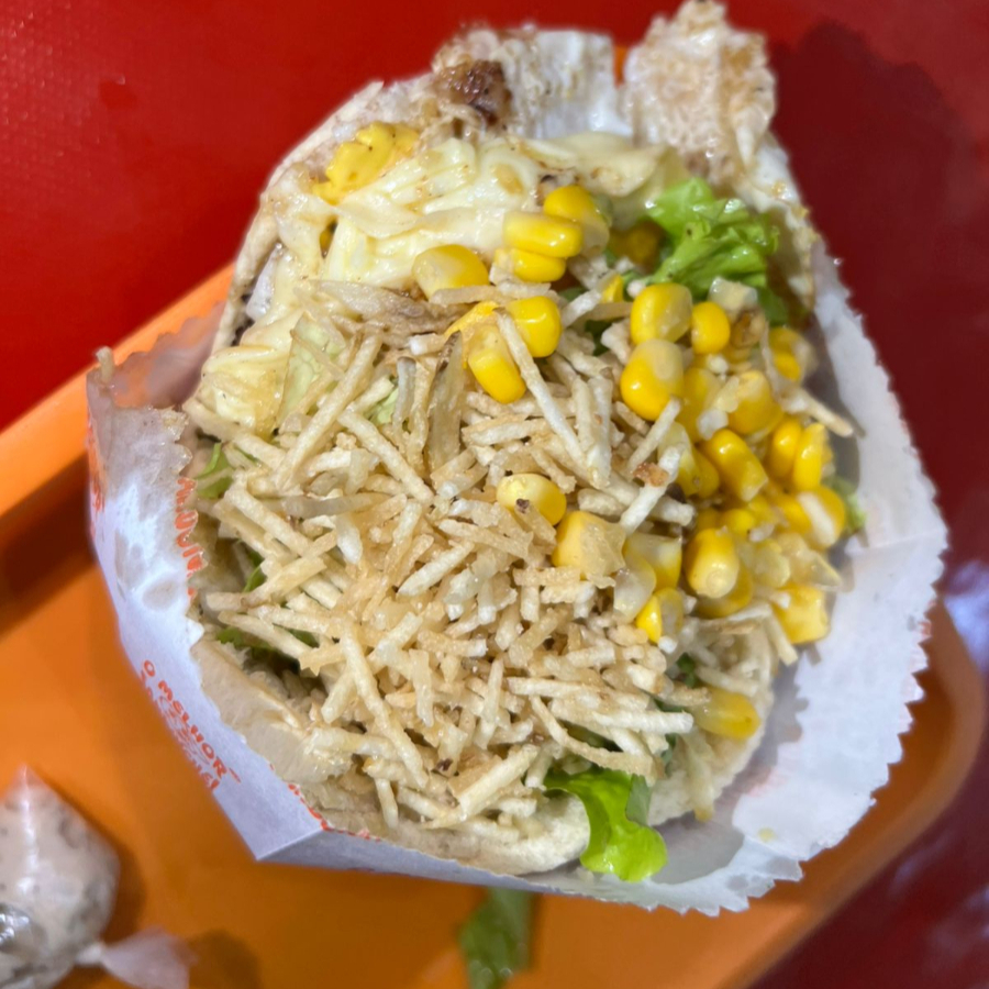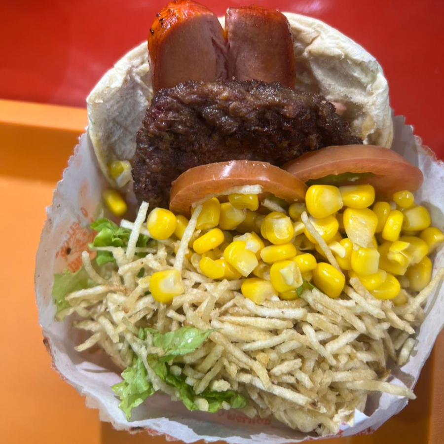 Pão do Mini, Opções de Carne ( Hambúrguer 75g, File de Frango 75g ou Salsicha), Muçarela, Salada, Milho e Batata Palha.