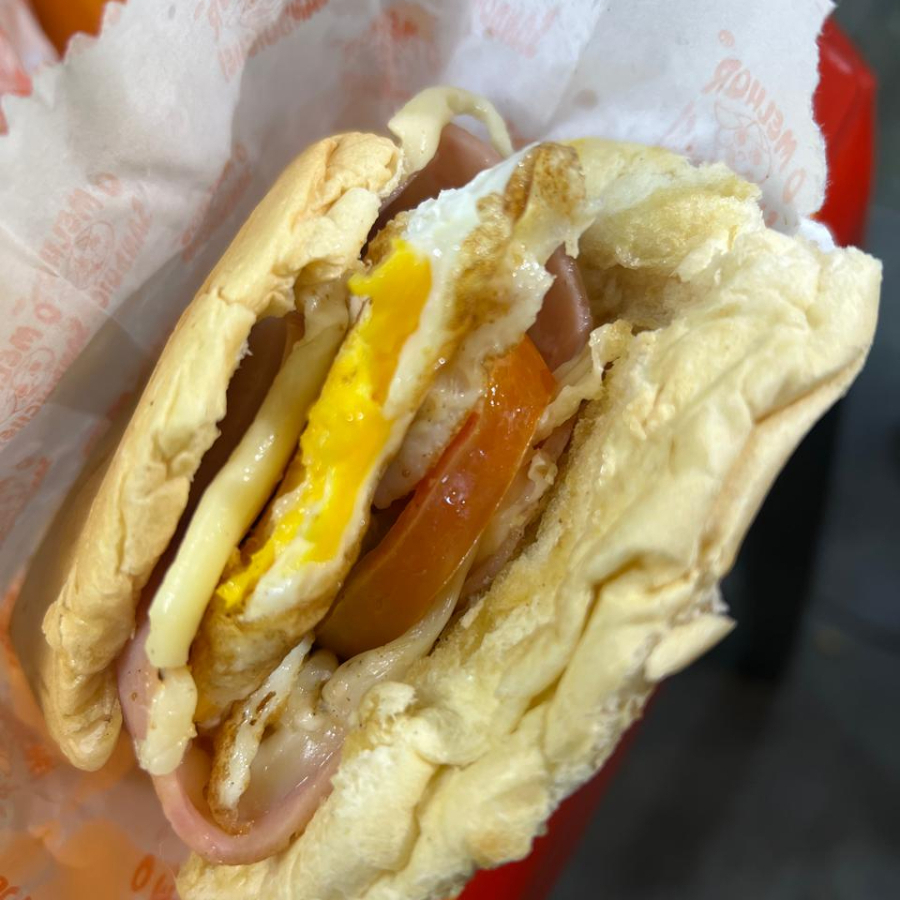 Pão, mussarela, presunto e ovo. Simples e delicioso, perfeito para qualquer momento.