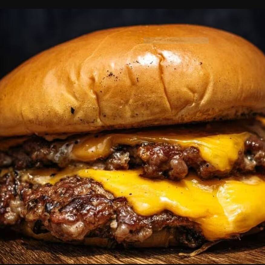 Pão brioche, duas carnes smash, cheddar, Catupiry, mussarela, cream cheese e bacon crocante.