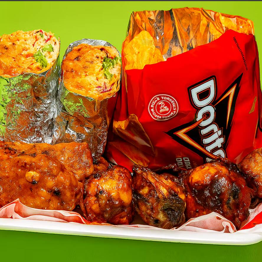 Combo Texmex – O Mais Completo da Casa! 2 mini burritos recheados, 1 mini Doritos Loko, 250g de Buffalo Wings e 250g de costelinha ao barbecue. Um banquete tex-mex pra dividir (ou não!).