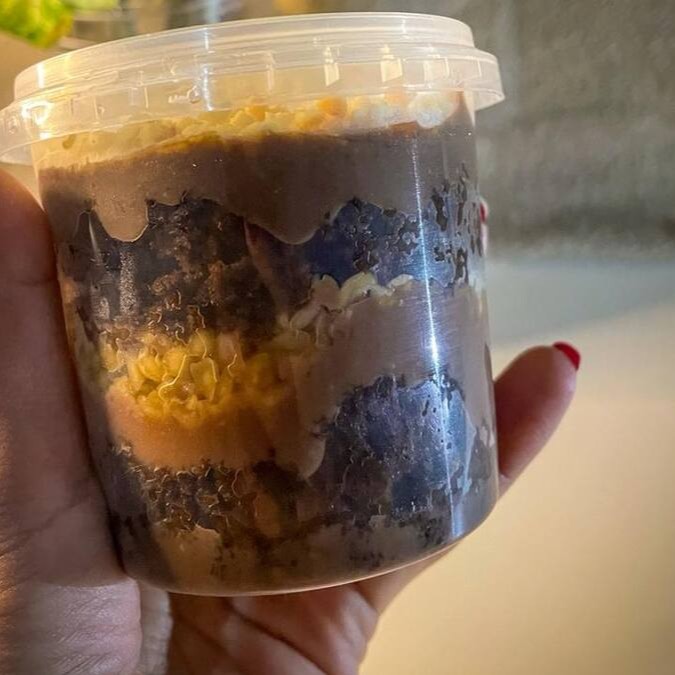Creme de chocolate, creme de avelã, amendoim e brownie