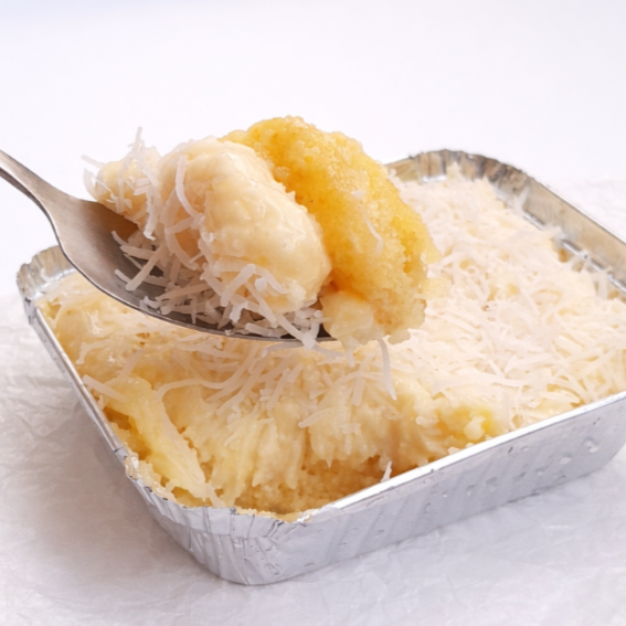 Bolo fofinho e molhadinho de baunilha, coberto com um cremoso brigadeiro de Ninho e finalizado com mais Ninho polvilhado. Feito na MINI marmita 220ml, Peso aprox: 240g