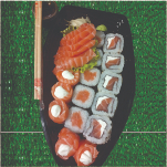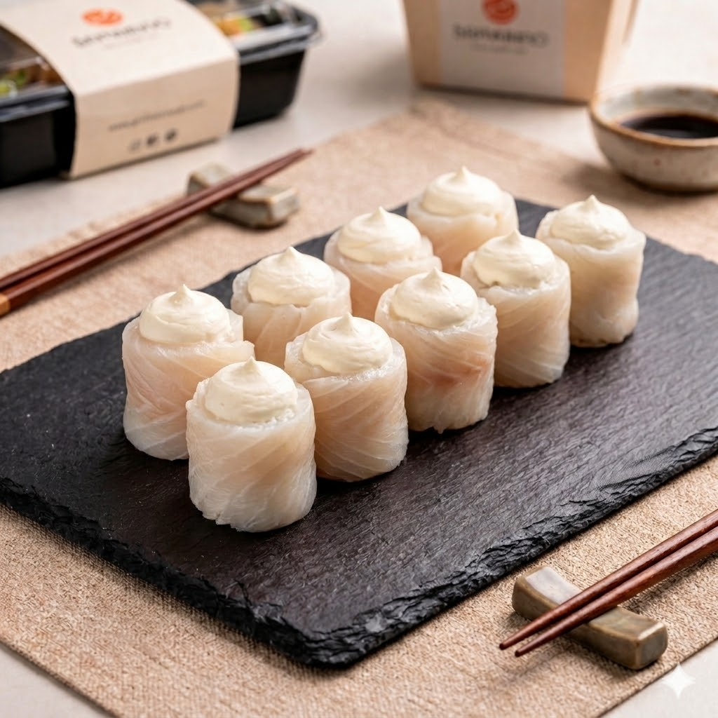 Alga marinha, arroz, salmão, cream chesse. Acompanha: 1 molho teriaki, 1 hashi.