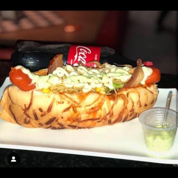 Pao hot dog com parmesao,2 salsichas,molho,Catupiry,bacon molhos especiais,milho e batata palha