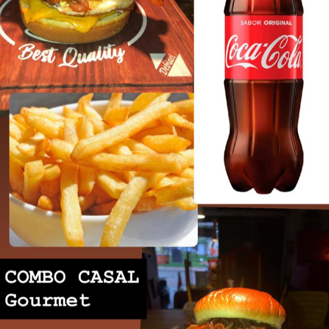 Sanduiche gourmet com hamburguer de fraldinha 220 gr,batata frita 200gr,e refri lata (Coca-Cola ou guarana Antarctica)