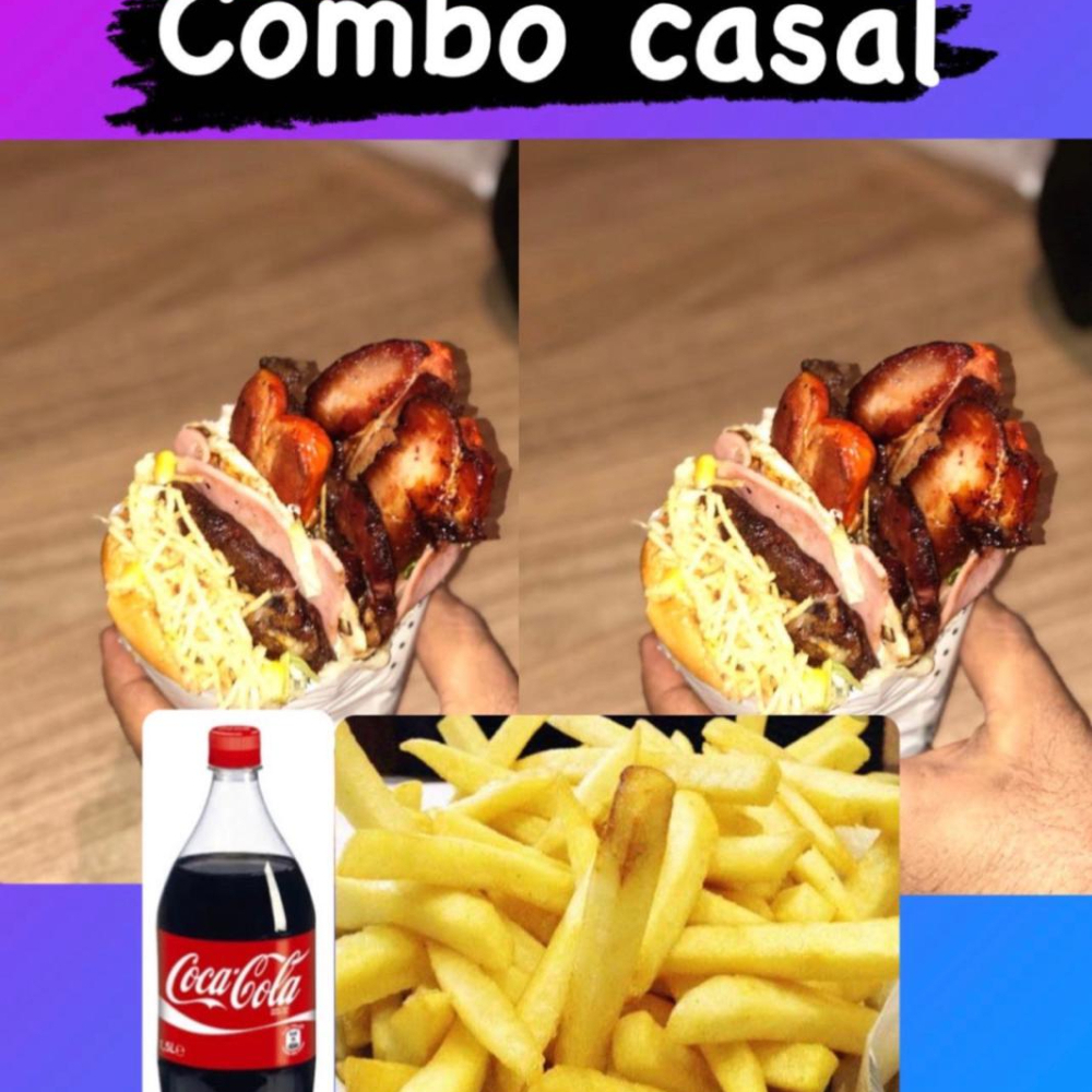 2 x tudo hambúrguer bovino +batata frita+coca cola 1,5