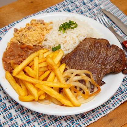 Acompanha: Arroz, feijão, batata frita e salada da casa