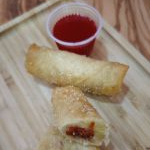 Rolinho de massa fina recheado com salmão c/ cream cheese.
