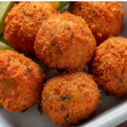 Deliciosos bolinhos de salmão com cream cheese empanados e fritos.