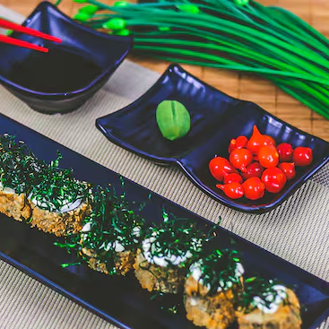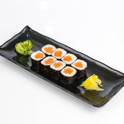 Enrolado de alga por fora recheados com salmão, cream cheese e cebolinha