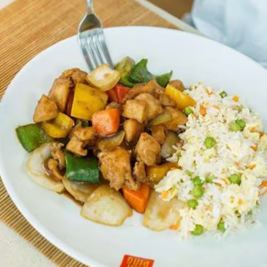 Frango Xadrez + Arroz Chop-suey