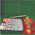 5 sushi shakemaki de salmão, 5 hossomaki de salmão com pepino, 5 Hossomaki Kane Kama, 5 Uramake de salmão com cream cheese, 5 Sushis do Chef , 5 Uramake California, 6 Niguiris variados, 12 peças de Hot Roll e 2 croquetes de salmão. Acompanha no pedido: 1 par de hashi, 1 molho teriaki e 1 molho shoyo.
