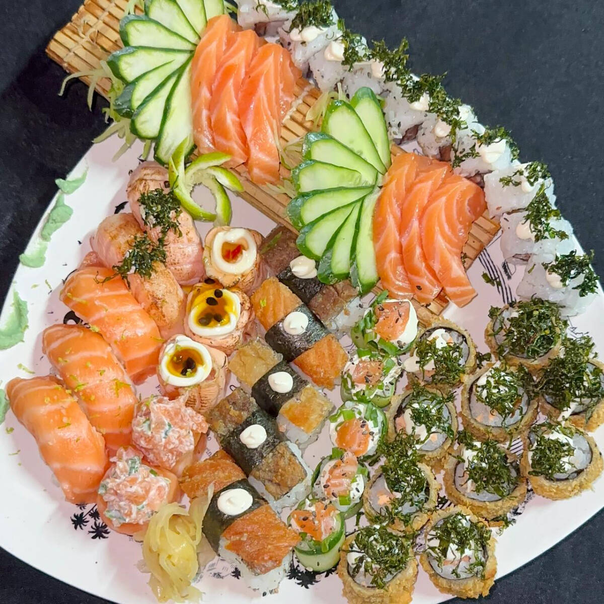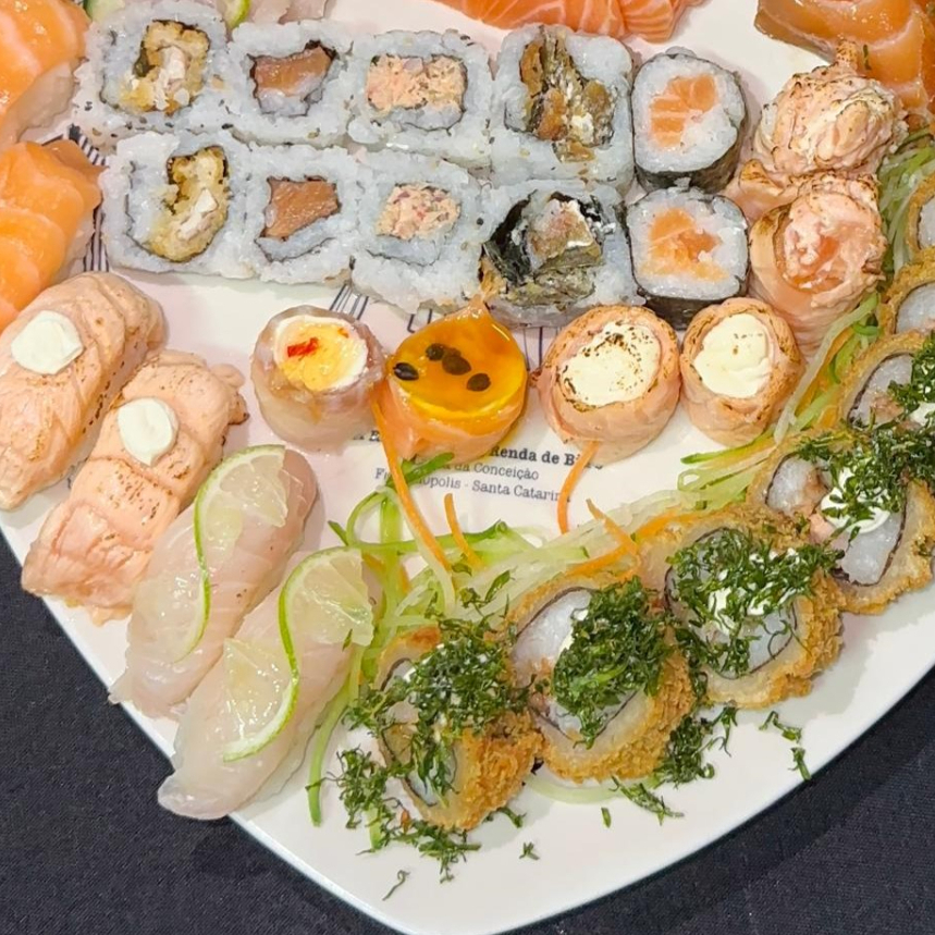 2 URAMAKI PATÊ DE SALMÃO 2 URAMAKI SKIN 2 URAMAKI TILÁPIA EMPANADA 2 URAMAKI SALMÃO 2 HOSSOMAKI SALMÃO 2 GUNKAN MAÇARICADO 2 NIGUIRI SALMÃO 2 NIGUIRI TILÁPIA 2 NIGUIRI MAÇARICADO 2 GUNKAN GELEIA 2 GUNKAN MAÇARICADO 4 SASHIMI SALMÃO 4 SASHIMI TILÁPIA 2 SASHIMI SALMÃO BLACK 8 HOT PHILADELPHIA