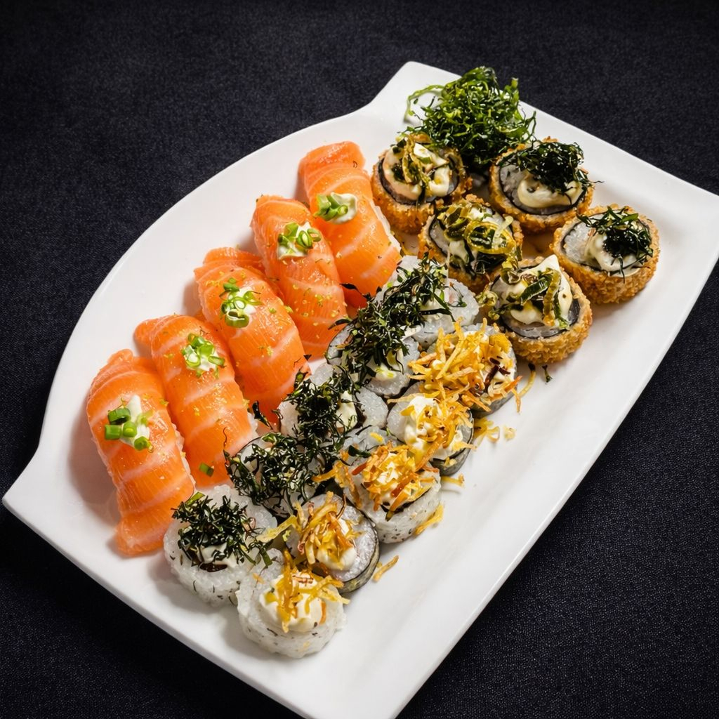 5 Hot Filadélfia 5 Uramaki Salmão 5 Hossomaki Salmão 5 Niguiri Salmão
