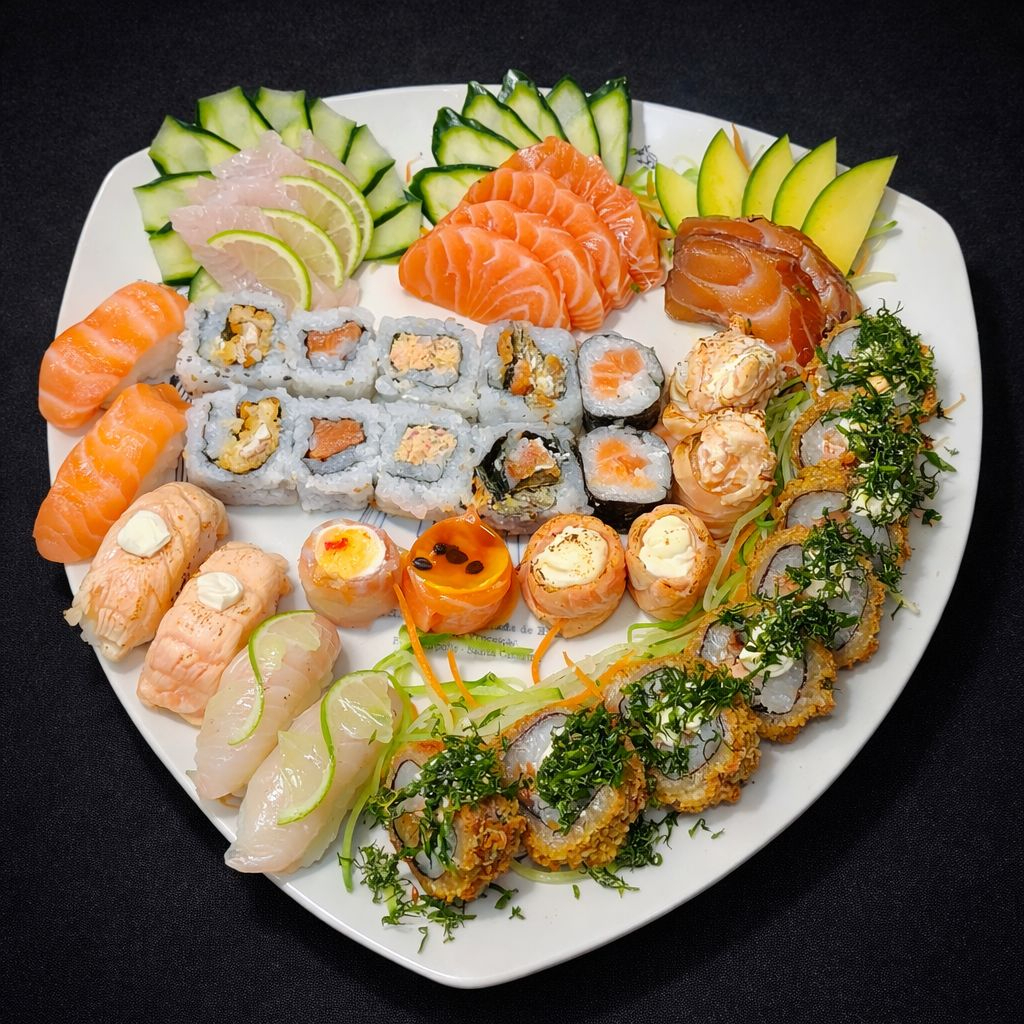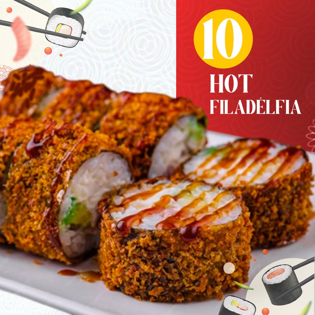 10 Hot Filadélfia 5 Uramaki Salmão 5 Hossomaki Salmão 5 Niguiri Salmão 5 Uramaki Kani