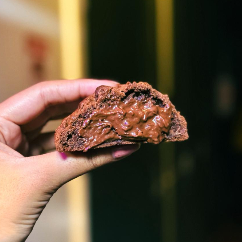 Cookie de Ovomaltine feito com massa Double Chocolate, repleta de gotas de chocolate ao leite e um irresistível recheio cremoso de Ovomaltine. Uma explosão de textura e sabor a cada mordida!