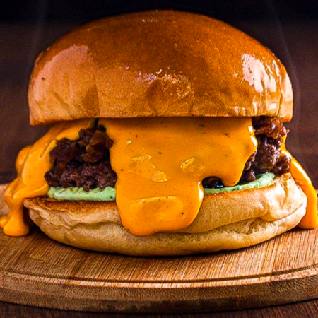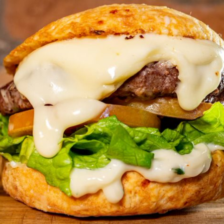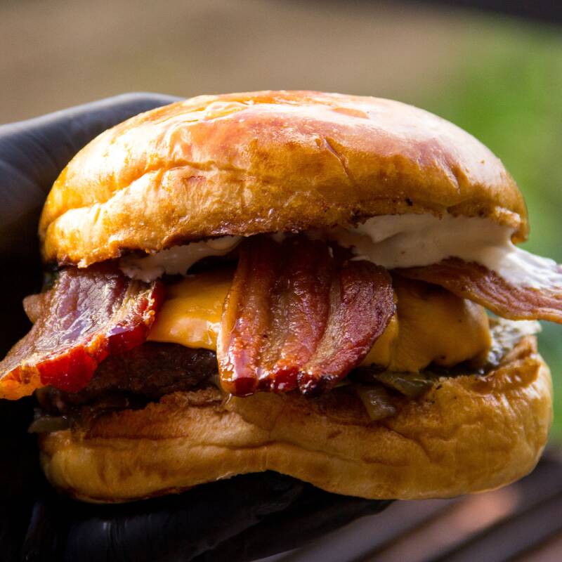 Blend de Costela 200g no Brioche, Bacon Crocante, Cheddar, Cream Cheese, Mussarela, Barbecue, Alface e Tomate Para Um Sabor Que Derrete Na Boca!