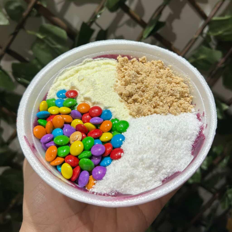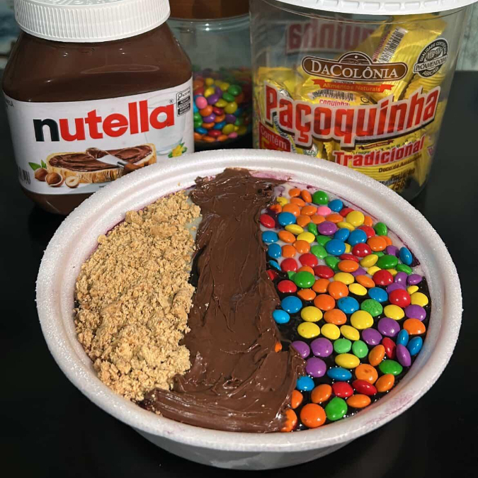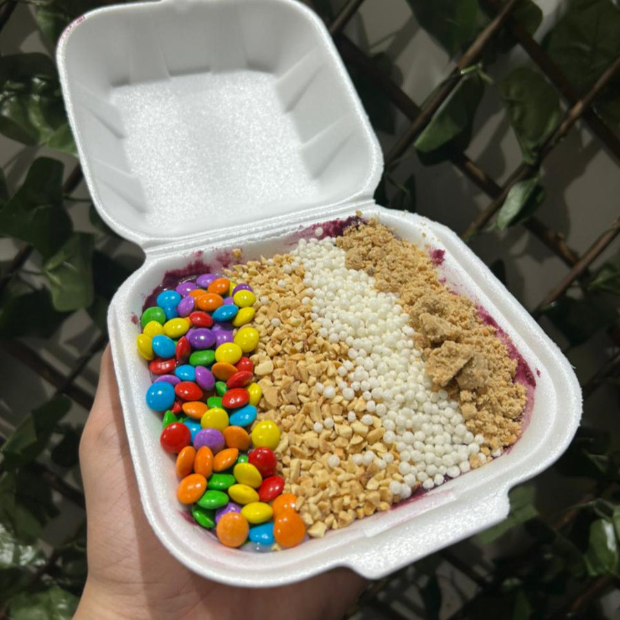 Uma quantidade generosa de açaí gourmet Premium, com os adicionais que você pode escolher para diferenciar seu paladar. (O pote vai somente com os acompanhamentos que você escolher.)