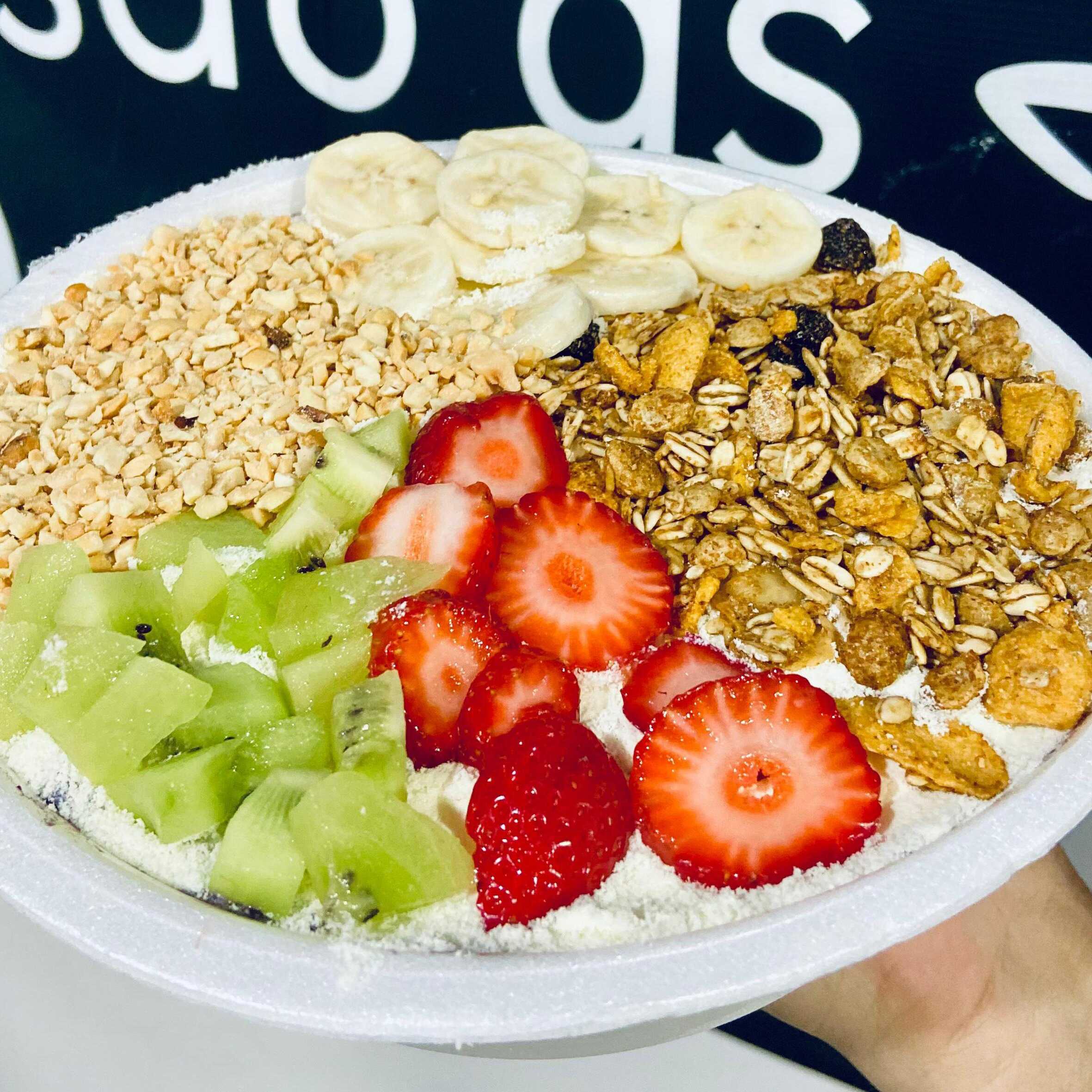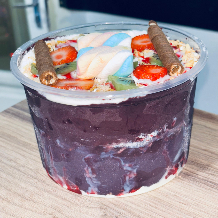 Açaí, Morangos Frescos, Creme de Ninho e Nutella.