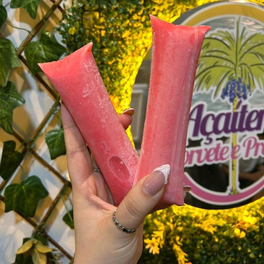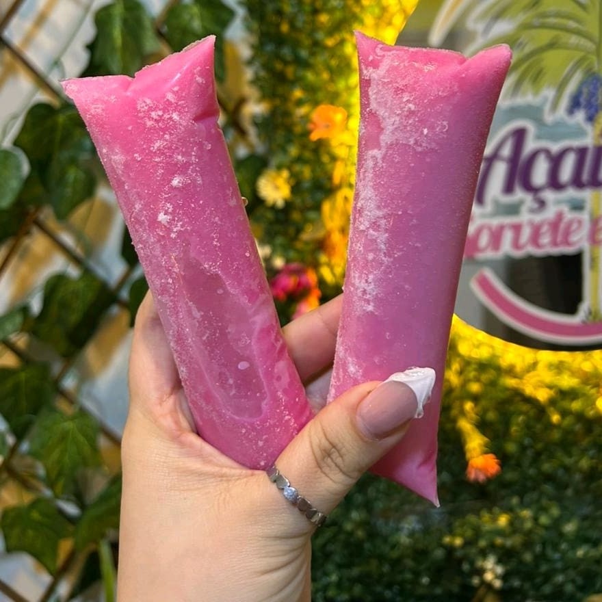 Na base temos uma camada de leite condensado, flocos de arroz e leite em pó, por cima uma generosa camada de açaí cremoso. O copo é composto por três camadas dessa delícia.