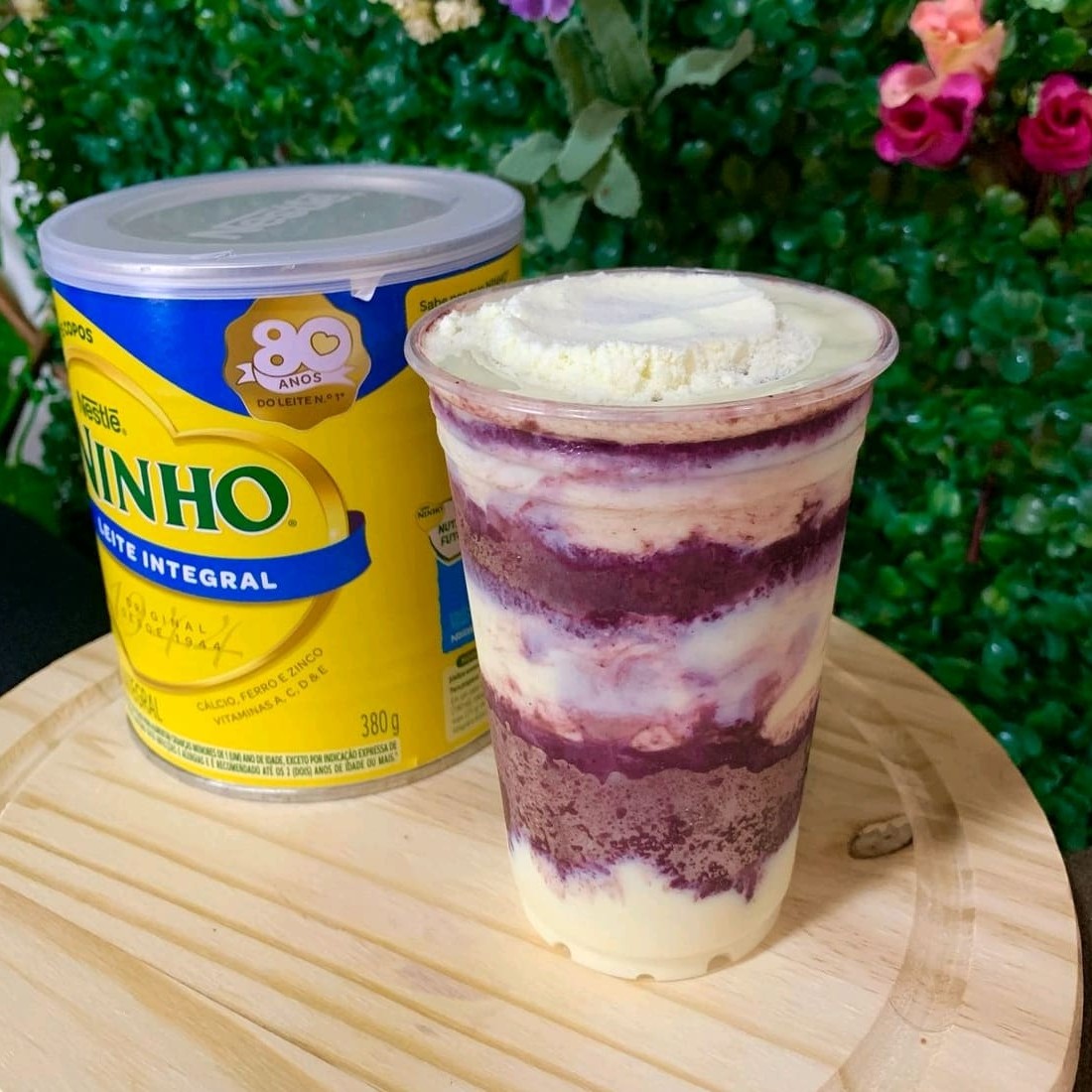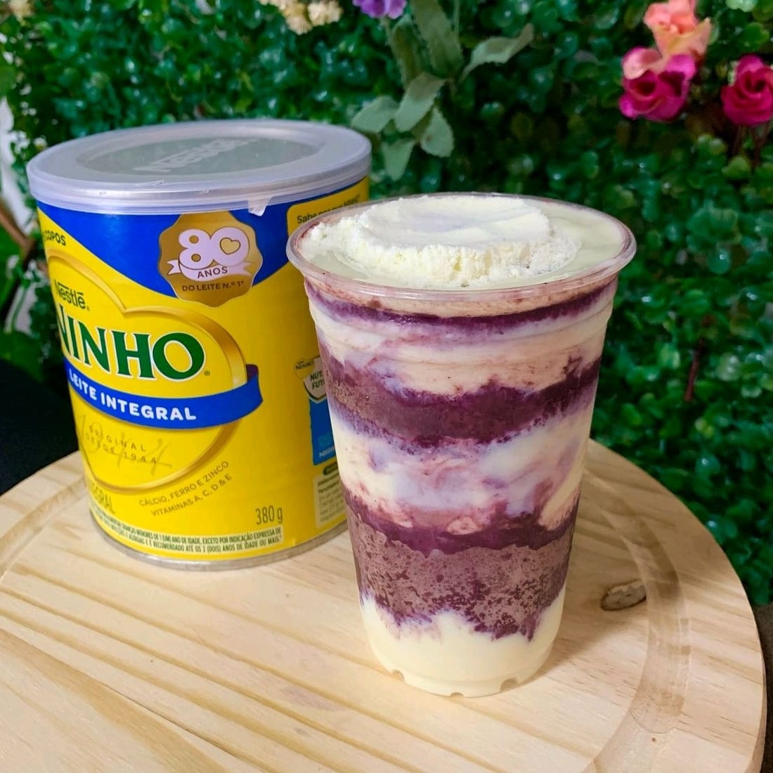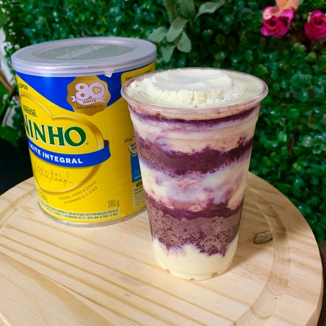 Essa delícia é composta por 2 camadas de Creme de Ninho, Leite em pó e 2 camadas de Açaí.