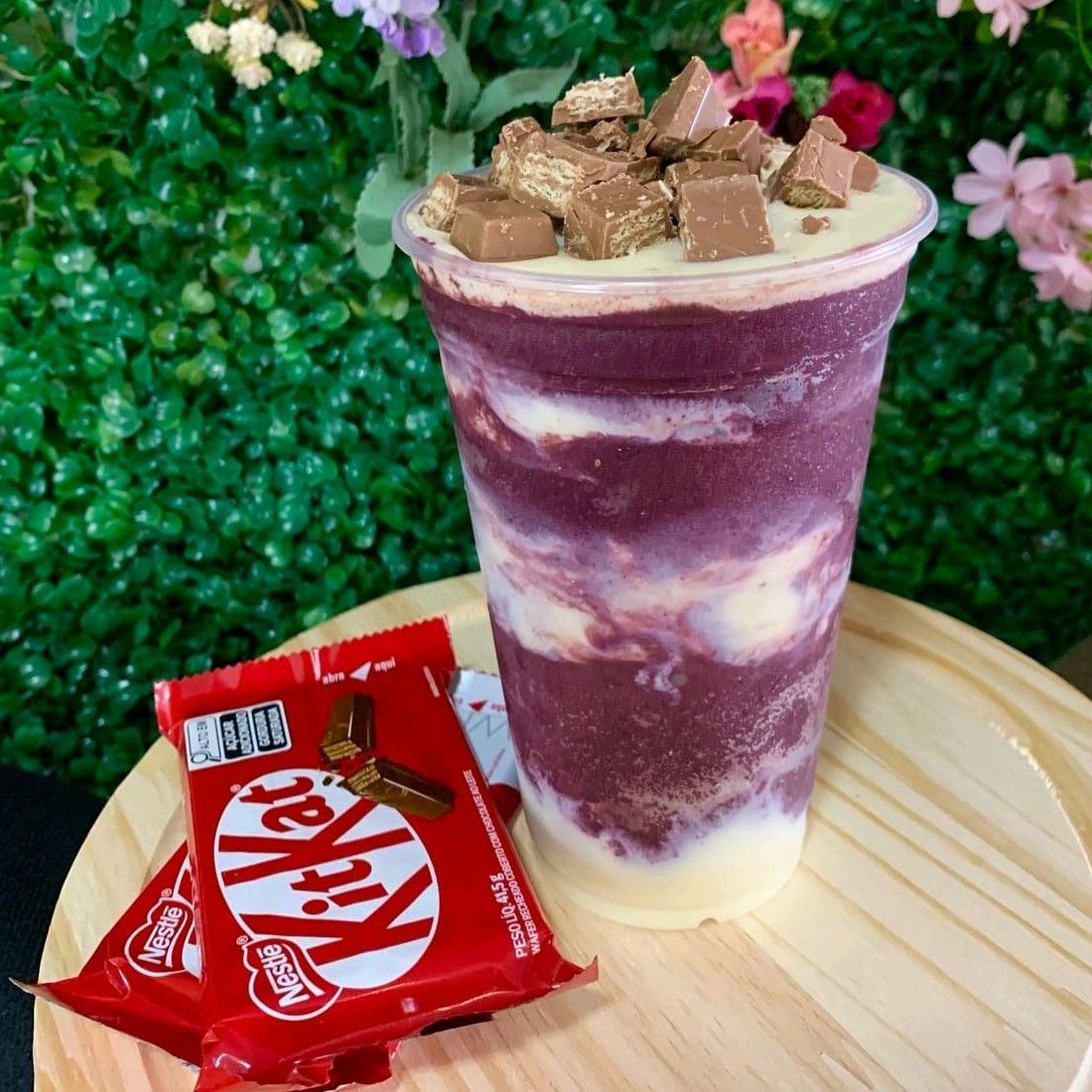 Essa delícia é composta por 2 camadas de Creme de Ninho, Kit Kat e Açaí.