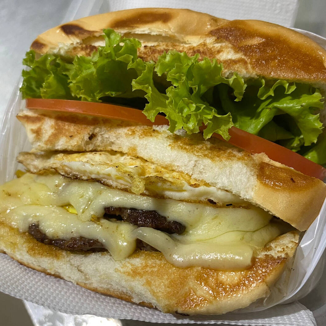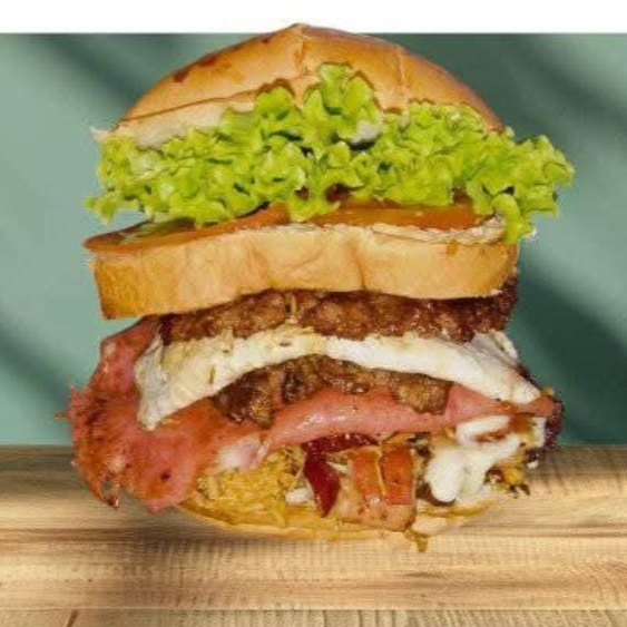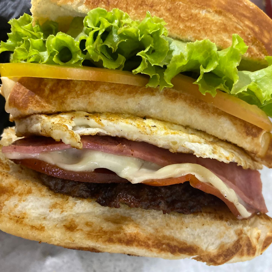 Pão, 2 carnes, 2 ovos, queijo, salada e batata palha.