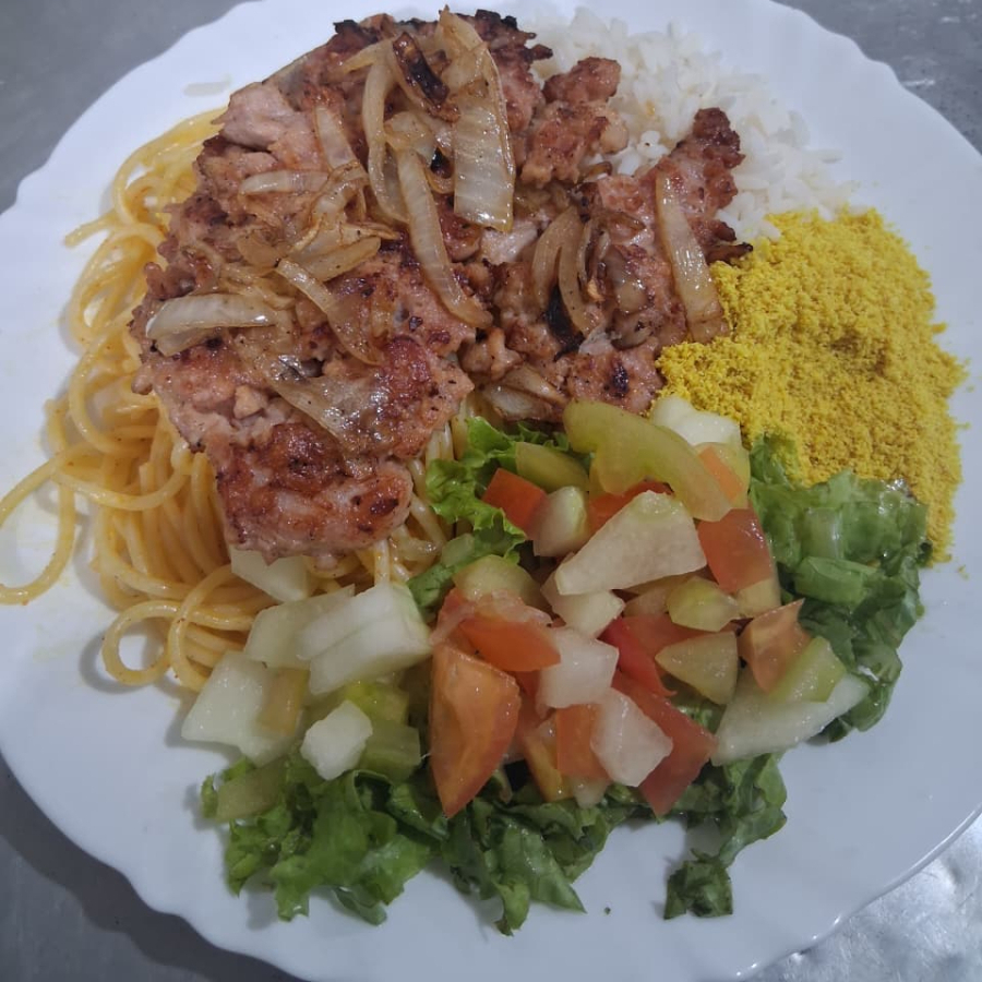 CARNE,ARROZ,FAROFA,MACARRÃO, E SALADA