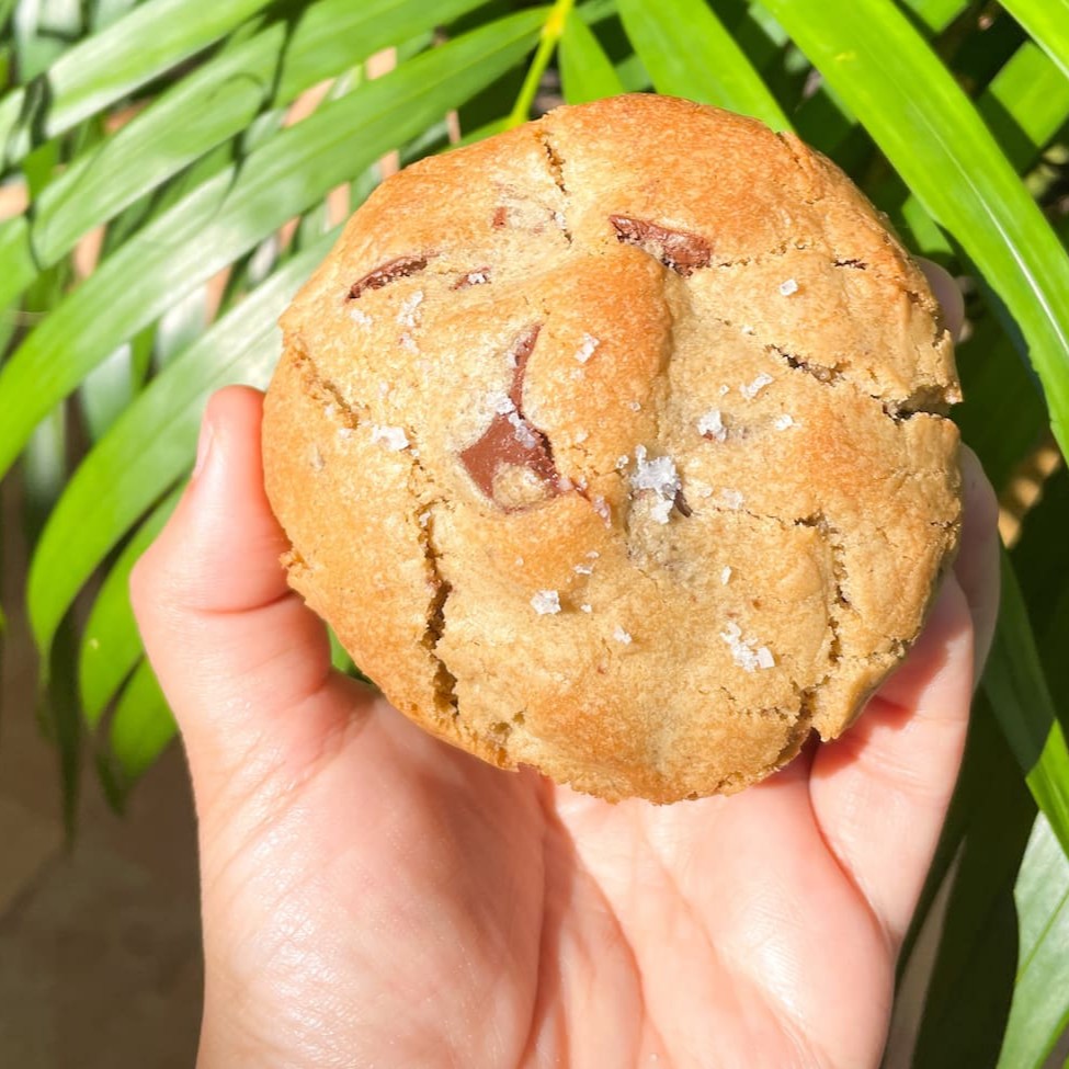 Massa tradicional, chocolate meio 40% e finalizado com flor de sal.