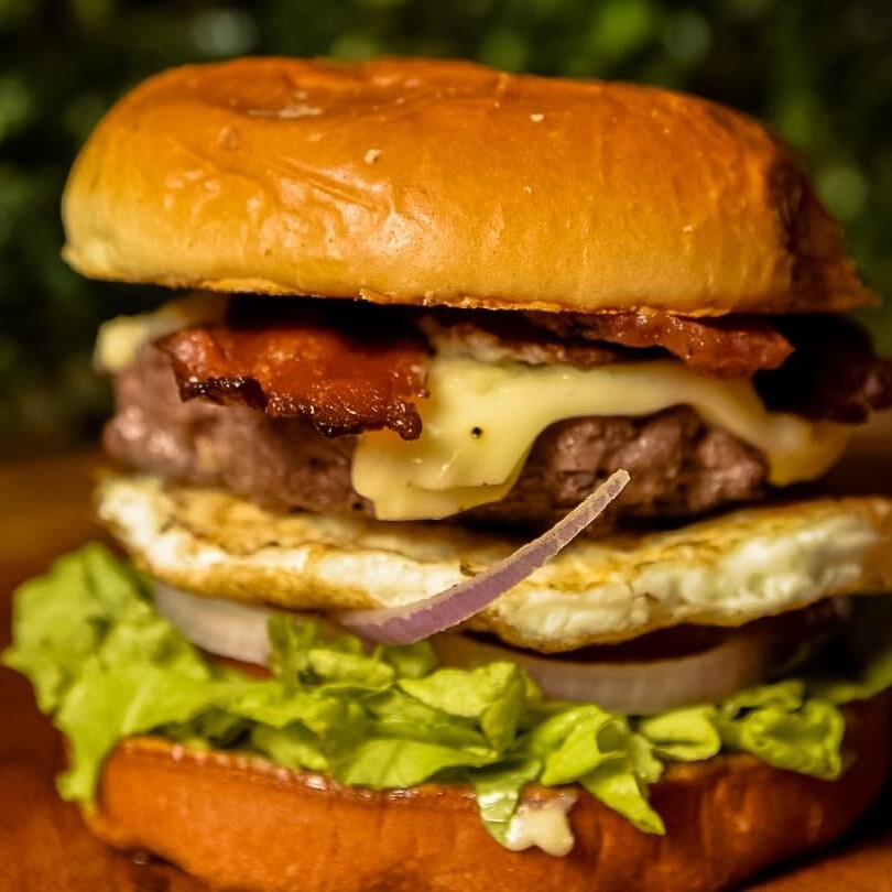 Pão Riviera, Blend De Fraldinha De 150g, Bacon, Calabresa, Ovo, Queijo Mussarela, Alface, Cebola Roxa E Tomate.