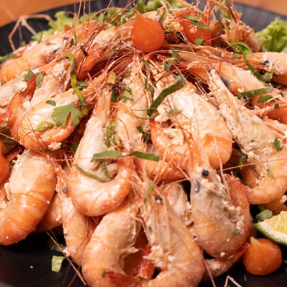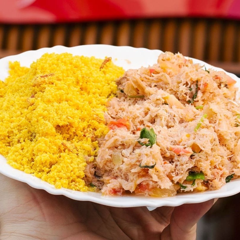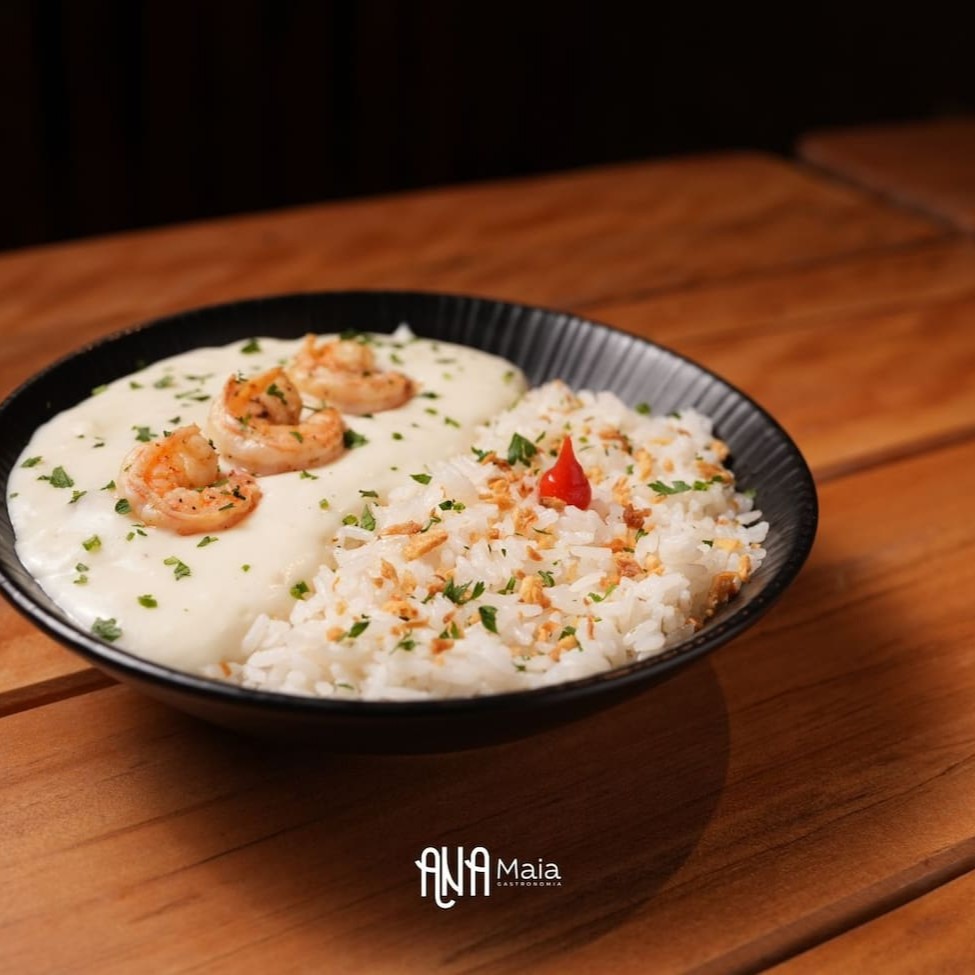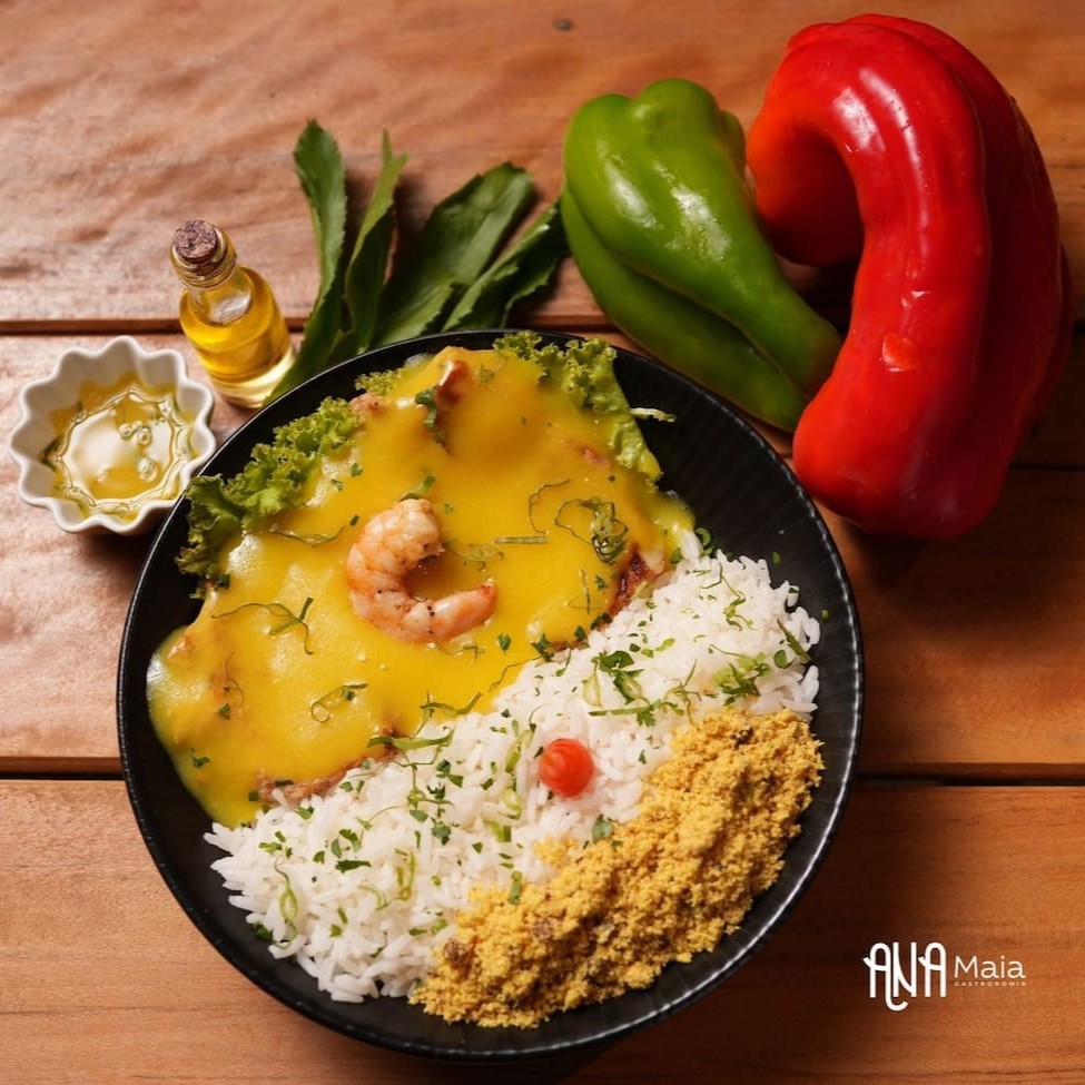 Camarão regional420g preparado no bafo acompanhado de farofa e pimenta tucupi.