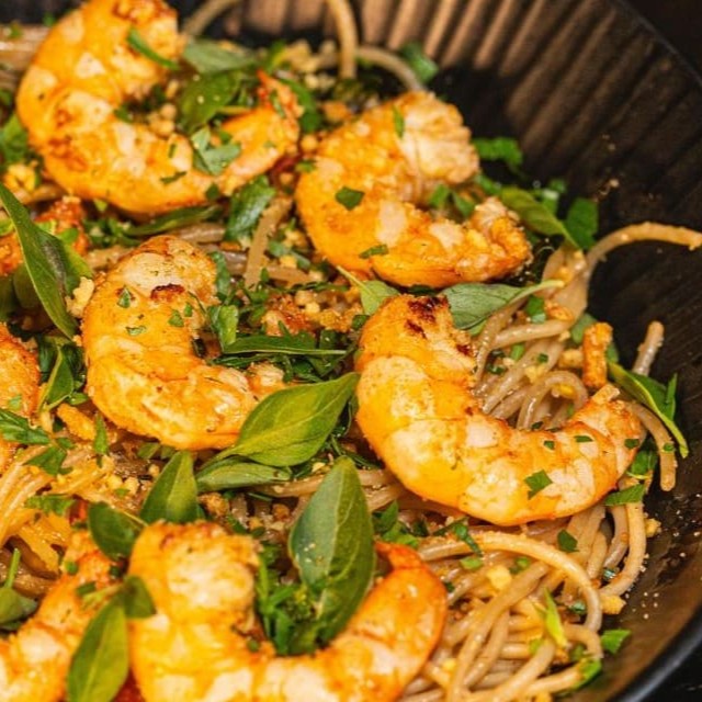 Massa de camarão rosa (08 und gg) preparado ao alho e óleo.