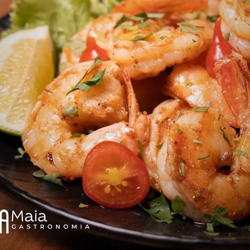 12 unidades de camarões rosas gg grelhados ao azeite, alho & ervas. Acompanha pimenta tucupi e farofa.