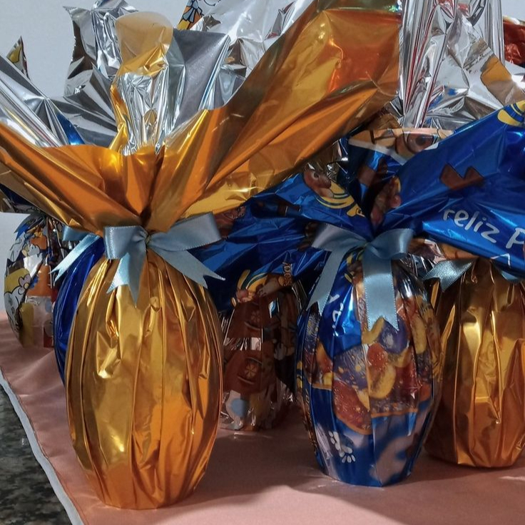 Ovo tradicional de 250g com casca crocante, vai com bombons dentro.