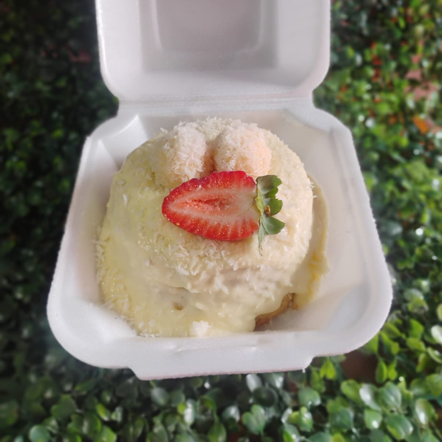 12cm - cobertura de beijinho, côco ralado com bolinhas de beijinho e morango