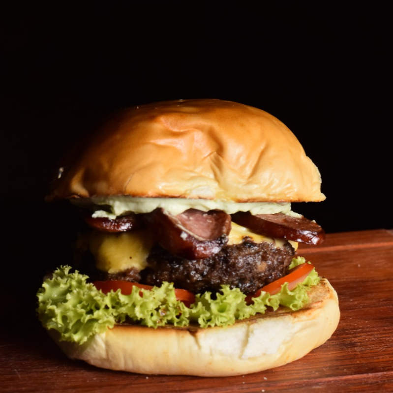 Carne 160g, bacon, Catupiry e maionese da casa.