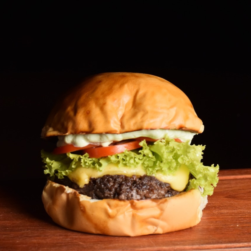Carne 160G, Queijo prato, Salada e maionese da casa.
