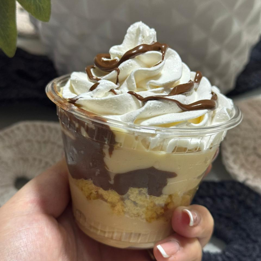 biscoite, creme de ninho, banana, doce de leite e finalizado no chantininho
