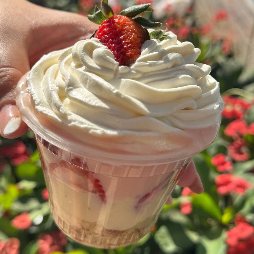 chocolate nobre, creme de ninho, brownie e morangos e finalizado no chantilly