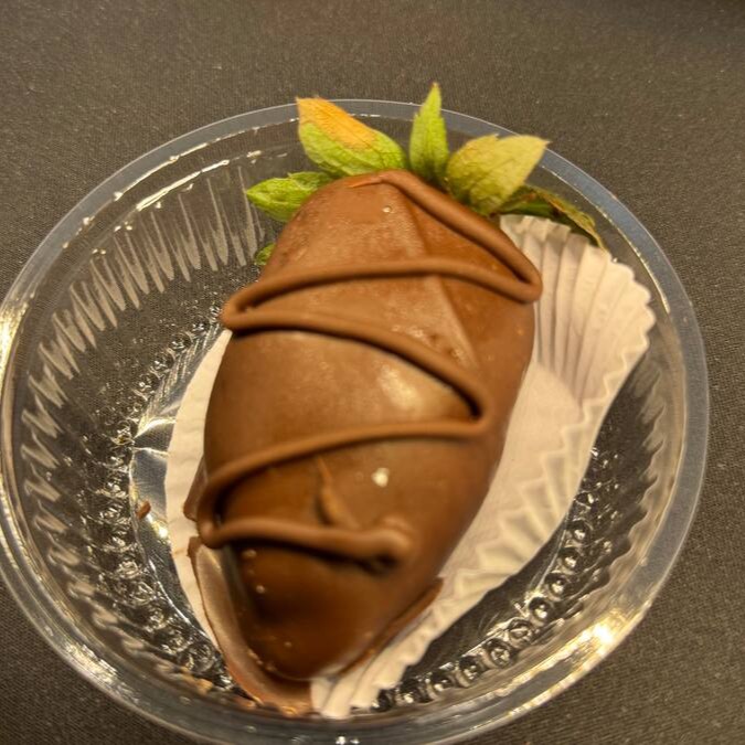 Morango inteiro, envolvido em brigadeiro de Ninho, coberto com uma camada deliciosa de chocolate